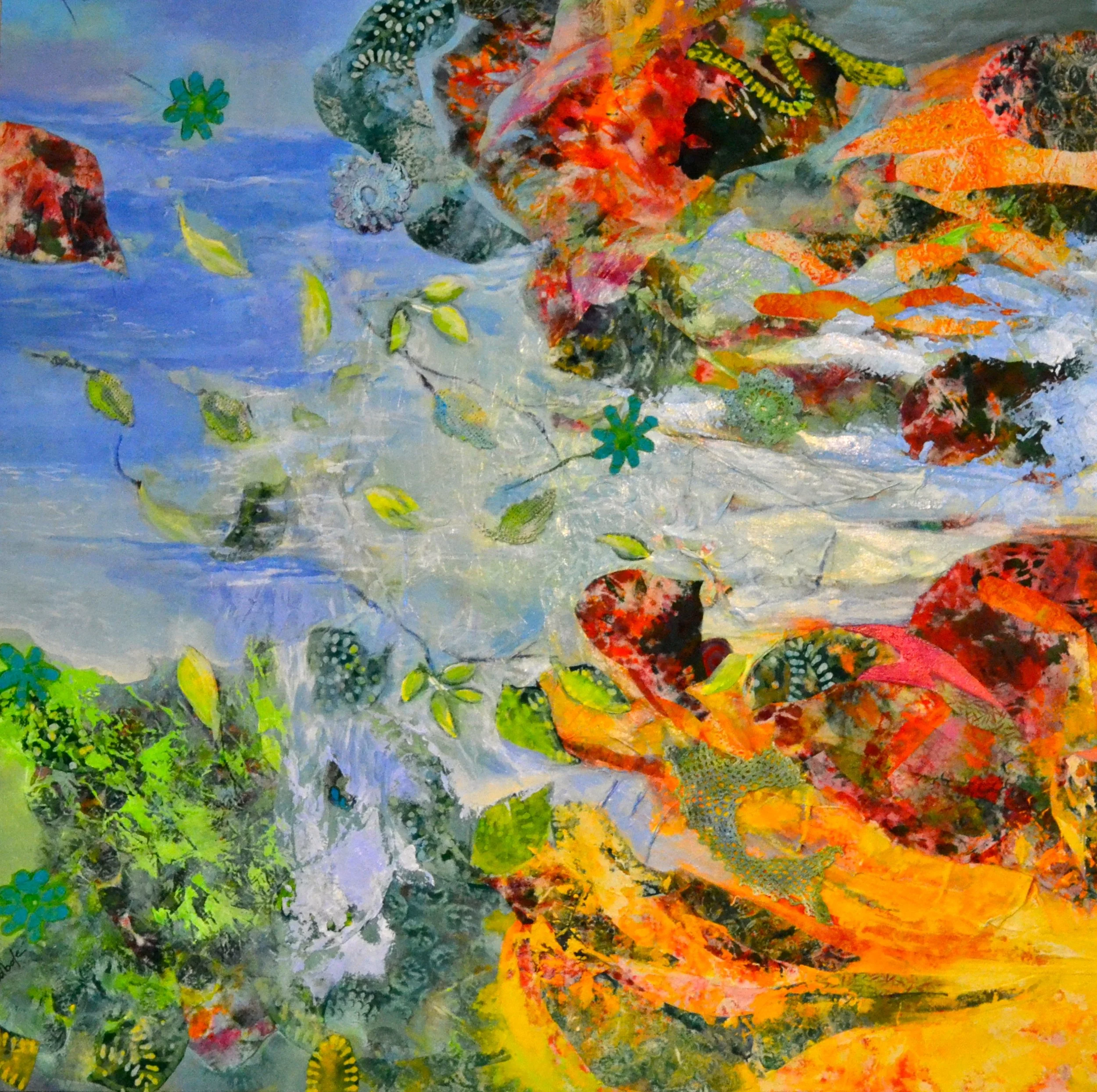 Art In Public Spaces. My artwork, a mixed media painting, was accepted into the year long exhibit at Southwest Florida International Airport in Ft Myers called “Connections”. My mixed media painting is about connections; connections that is, to our environment. Preserving our clean air and clean water should be our priority and promise to our planet and future generations. Water is important and symbolic, in that, it reminds us of our origins; the element from which all life emerged.